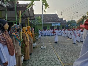 Hari ini adalah hari Senin tanggal 1 Agustus 2022 seperti biasanya juga diadakan upacara bendera yang dilaksanakan di halaman depan sekolah.Upacara dimulai sekitar pukul 07.00 WIB.Para siswa sangat bersemangat mengikuti upacara pada pagi ini.